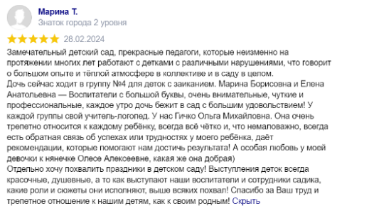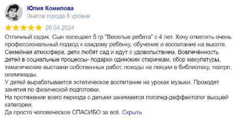 В данном разделе представлены отзывы о нашем детском саде с сайта https://yandex.ru/