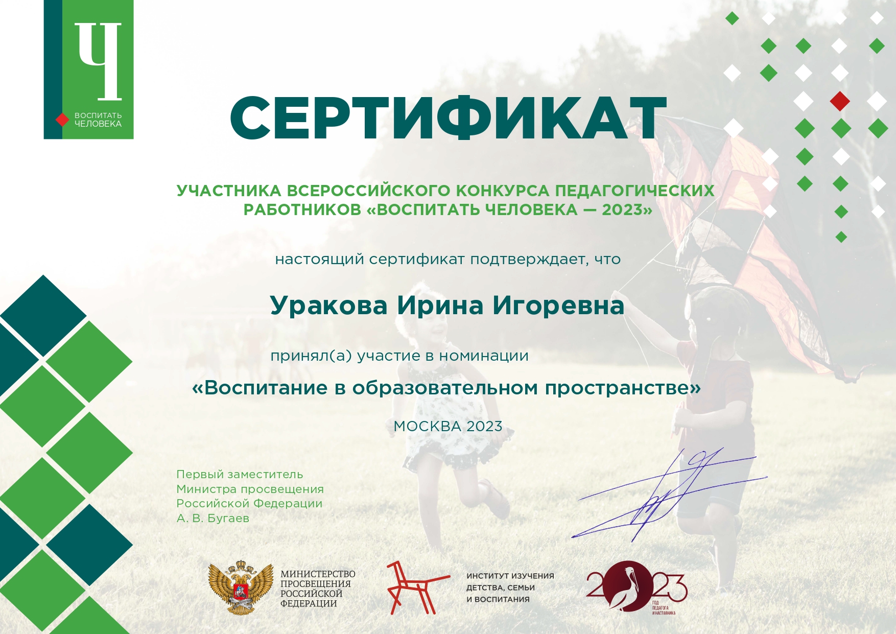- Всероссийский конкурс педагогических работников "Воспитать человека - 2023", участник