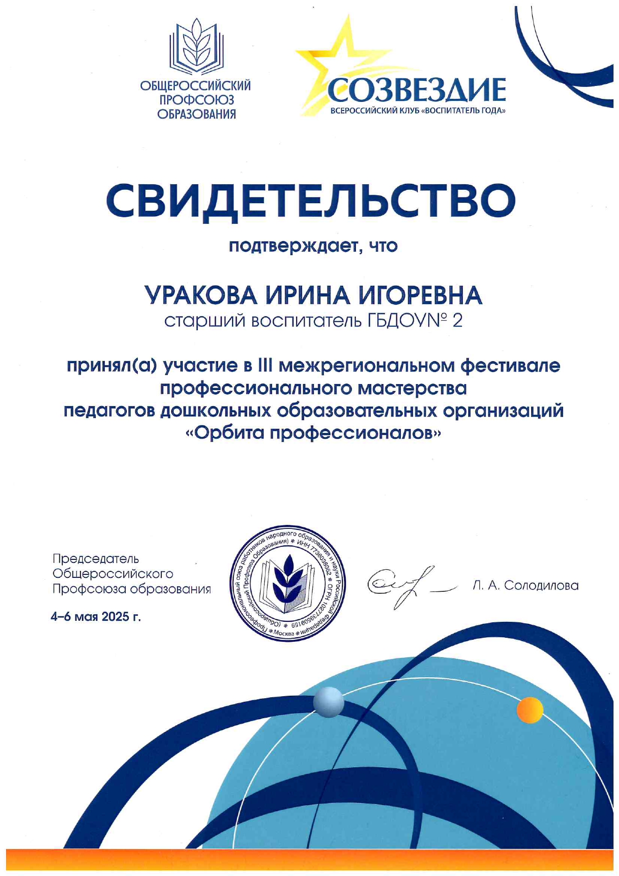 - III межрегиональный фестиваль профессионального мастерства педагогов дошкольных образовательных организаций "Орбита профессионалов", участник